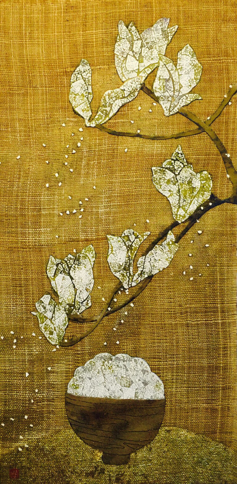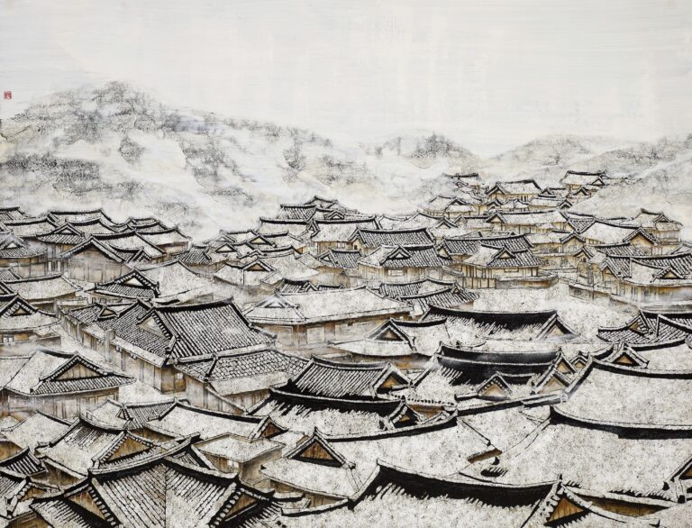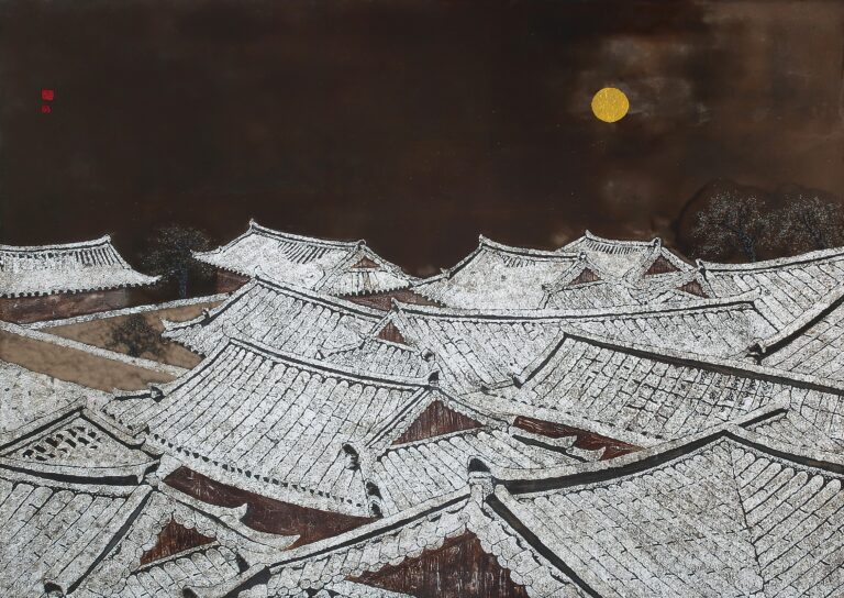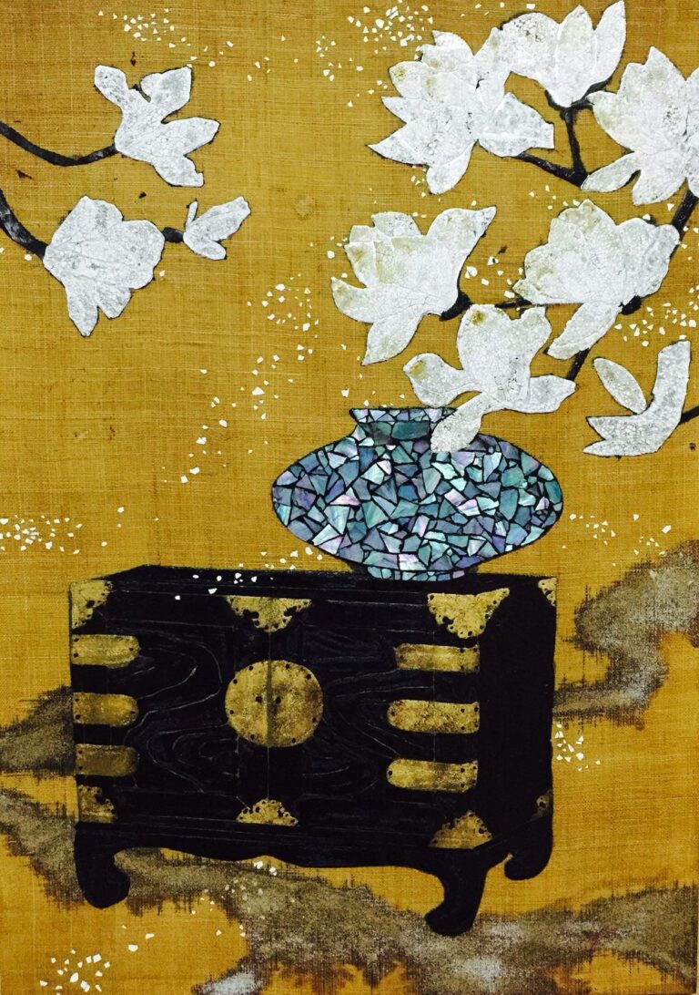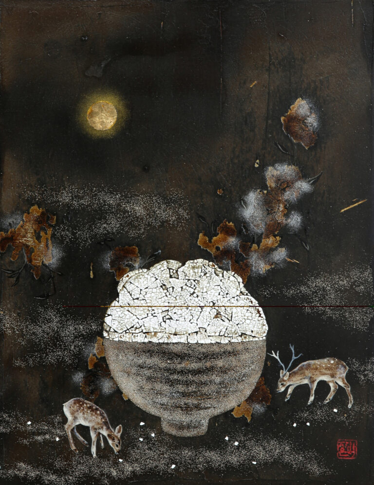 ” The theme of ‘Tong-e’, which means home, is expressed in lacquer materials with Korean lyricism, so that comfortable contemplation can be conveyed through the work. In the name of a home where you can rest comfortably without burden, the word “tung-e” is used as a metaphor for one’s own home or mother’s arms, and it reminds us of mother’s arms in the dialect of Dungwoori(nest). In his/her heart, the peace of a simple life calmly flows.