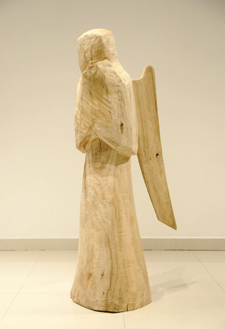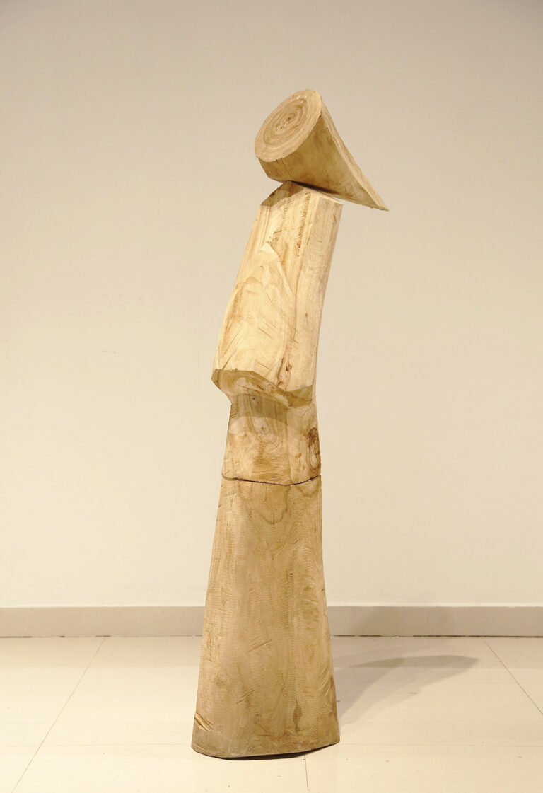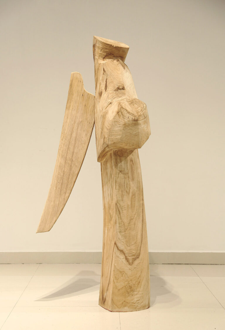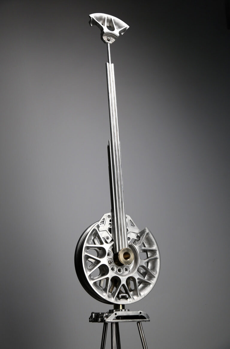 ” I have a lyre in my heart. My strong muscles and bones produce bold tones, while my multi-sensitive heart produces soft, gentle tones. I pick up parts left over from large industries and make lyres. The quiet melody is already ringing in my heart. I love these parts. Because these parts, covered in the dust of history, exhale the unique flavour of their time. Through those artefacts I meditate on the aesthetics of that era. The beauty of the industrial age still strikes us. I prefer its beauty to its rise and fall, like an old man recounting a moving scene. The sound of its spinning gears and various metal parts colliding with each other is like a grand symphony of the power of that era. I don’t know which part is my favourite part. It might be a small cog in a large ship, but it is what keeps the ship from being lost at sea. Or it could be part of a porthole where people used to lie on their backs and look out over the blue sea. These discarded parts blow my mind. The unique metal parts, which are a concentration of the greatness and wisdom of the creators of that era, make a cheerful and powerful sound that is a marvel to behold. They are irreversible metal parts that embody the dreams of many engineers. Moulds are made from blueprints of the time, and everything from minute gears to huge propellers are cast into three-dimensional models. They are hard but not inorganic like steel, and their parts, which are inhabited by the thoughts of the designers and the body warmth of the producers, are rigorous but not monotonous, with tens of millions of variations, giving the impression that the design style of industrial parts differs greatly from region to region. Different cultural backgrounds and different processing methods hide different aesthetic sensibilities. When the storm of the Industrial Revolution swept across the world, everything melted into and intertwined with the soil there, like dew in a desert. For me, it is important to keep in mind all the messy components. Because they were all sounds I was trying to play. I was on a mission to rework them into a work of art and sing the melodies of that era once more. I want to sing of the past and preserve its magnificent fragments. And I want to sing of the present and celebrate the return of the heroic spirit of today. In designing and combining them again and again, I discovered a beauty that must not be forgotten. Cold skeletons are transformed into soft curves, the wisdom of Western industry into the flavour of Eastern art. The process of recombination is like dew melting into the earth. This earth is nothing but a lyre in my heart. It is the medium through which I express the emotions of my life, the warmth and coldness of the world. As there is a lyre in everyone’s heart, we probably spend a lifetime searching for it and a lifetime playing it. The former shipyards of heavy industry have become a window to modern culture and hold many memories in people’s hearts. This sculpture is like an old sea lyre song playing in our hearts.”