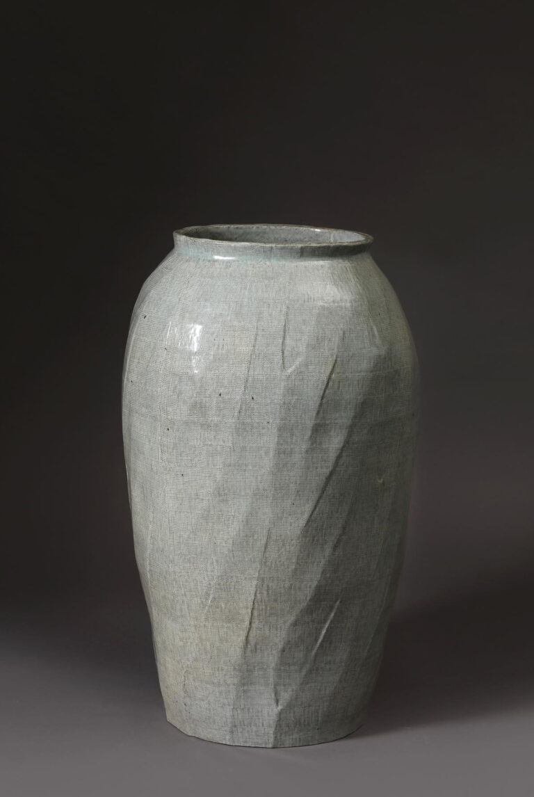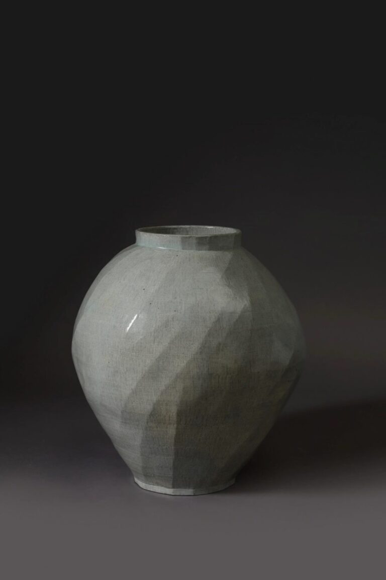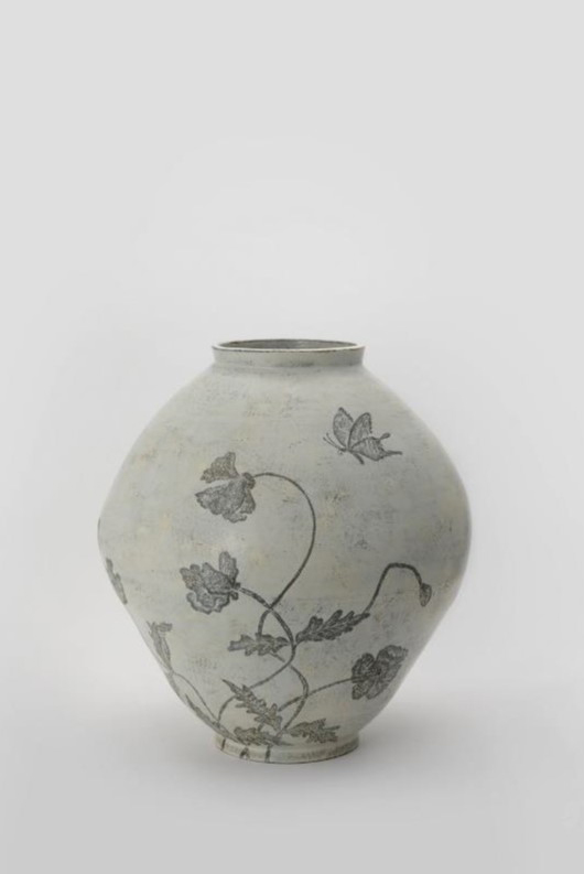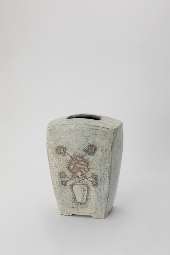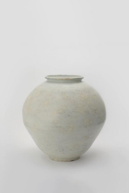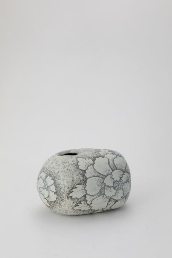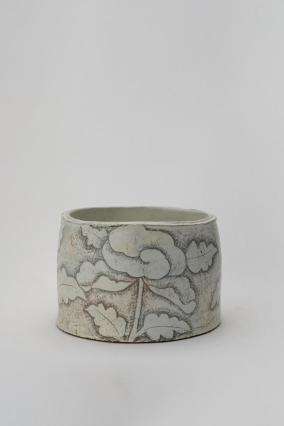 ” I use specific buncheong techniques that after I make a pattern on a jar repeatedly or irregularly and then fill it with slip.