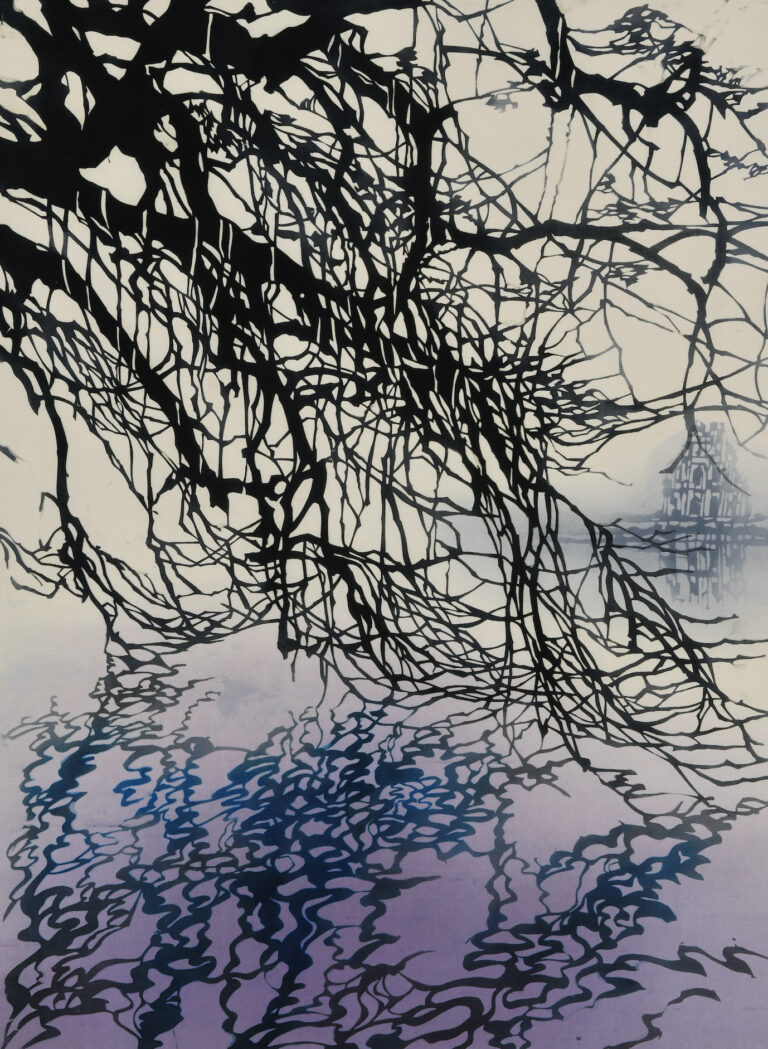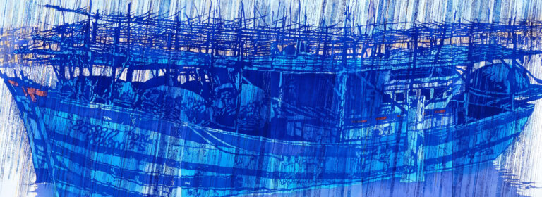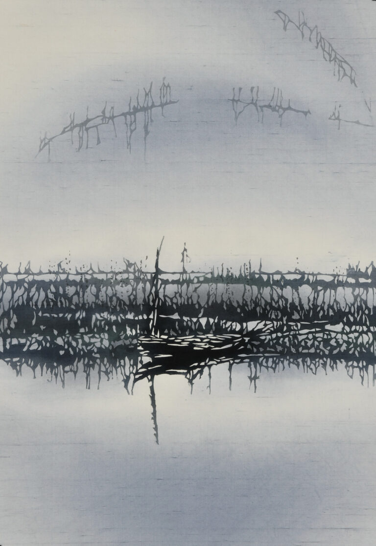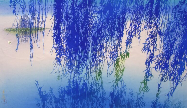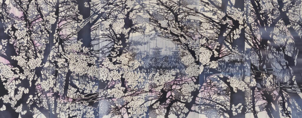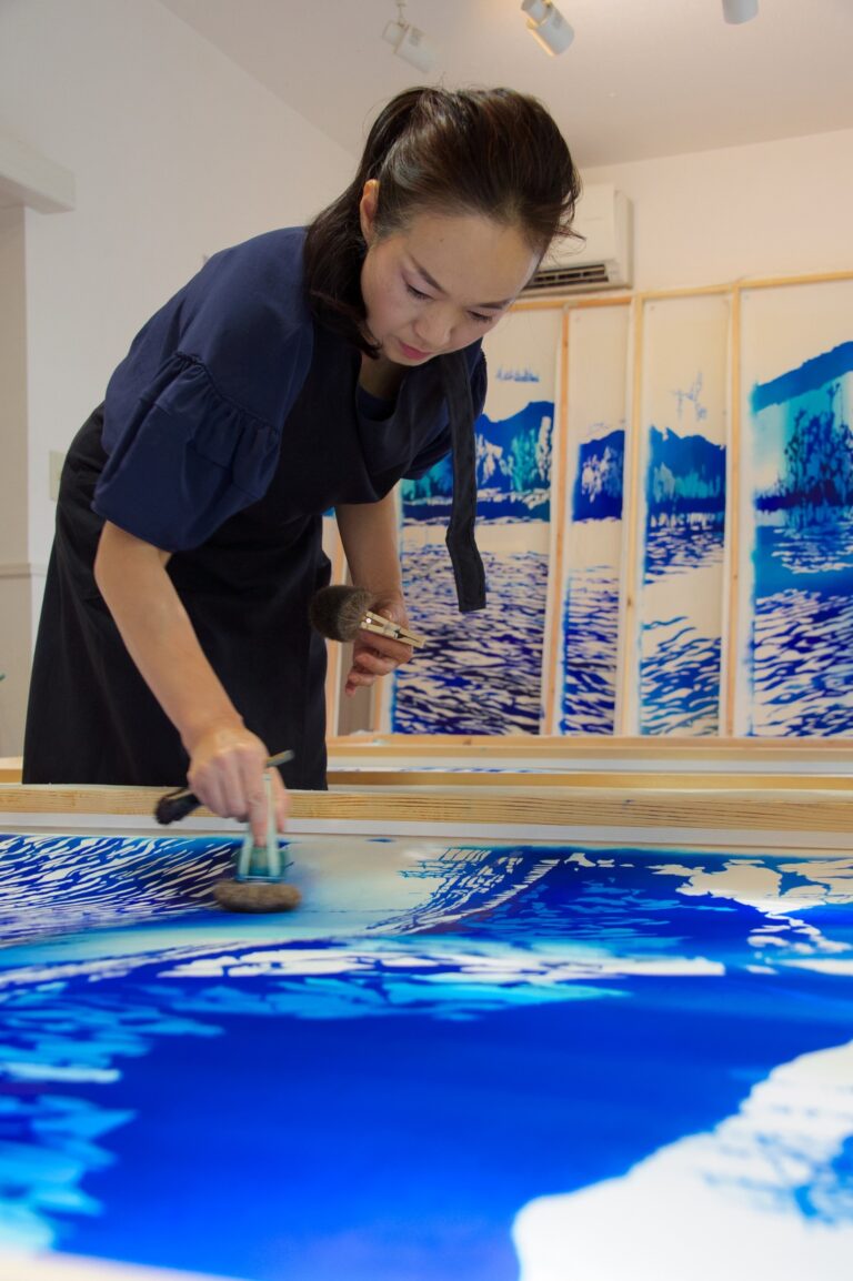 Katazome is an art form to create patterns through complicated process—draw patterns, then produce “ Katagami”, by cutting a washi stencil paper in accordance with the drawing, and then, place resist paste over the blank space so that dye would not spread— a totally different process from the painting. It requires 18 different process of no return, and many talented craft persons wit high level of technique were involved to develop this Katazome method over many centuries in Japan.